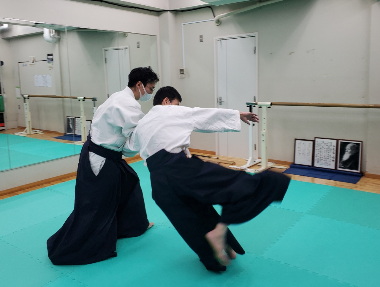 さらに、普段から袴をはいて稽古していると足がバタつかなくなり、重心が安定して技の上達につながる可能性があると思います。ある外部の方が自分たちの合氣道を見た際、「歩くときに腰が上下にブレずに安定している」、という感想を述べていました。色々考えて、その理由の一つが袴にあるのではないかと思ったのです。とすると、袴をはかないということは、上達できる方法を一つみすみす捨ててしまっていることになるので、非常にもったいないことだと感じます。