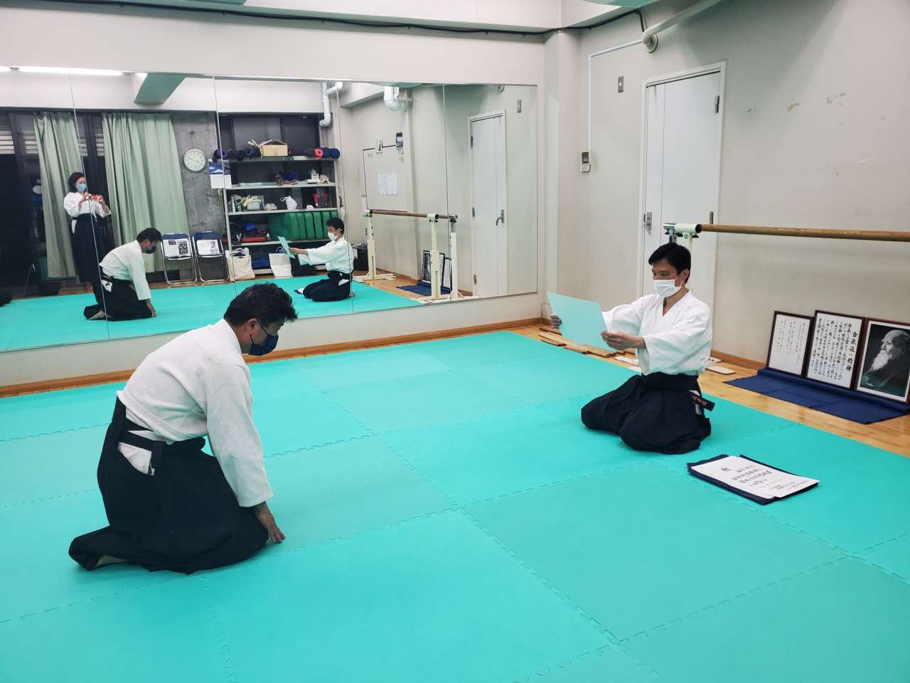 昇級式ではちょっと偉そうにしていますが、合氣道真生会の中では自分もただの一般会員です。川崎高津道場のことは開設者として自分が全責任を負いますし、練習場所の確保、稽古の進行、本部への報告や会費の集計、あとちょっぴり道場の宣伝…といった諸々の業務は担当していますが、それは自分が稽古していくために必要だからやっているだけのことで、真生会においてなんら特別なことではありません。ついでに確認しておきますがお預かりしている月々の会費や昇級料も全て道場の運営費であって(主に本部への納付分と会場使用料)、自分の懐には1円たりとも入れていません。自分もみなさんと同じように会費を納めています。だから「月謝」でなく「会費」なのであって、言い換えれば「道場運営分担費」って感じです。