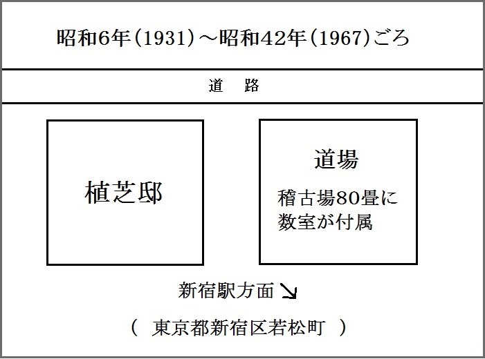 昭和2年(1927)には一家で東京に移住し、昭和6年(1931)には新宿区若松町に現在の合気会本部道場の前身となる「皇武館」が建設されます。開祖一家のお住まいもその隣に造られました。