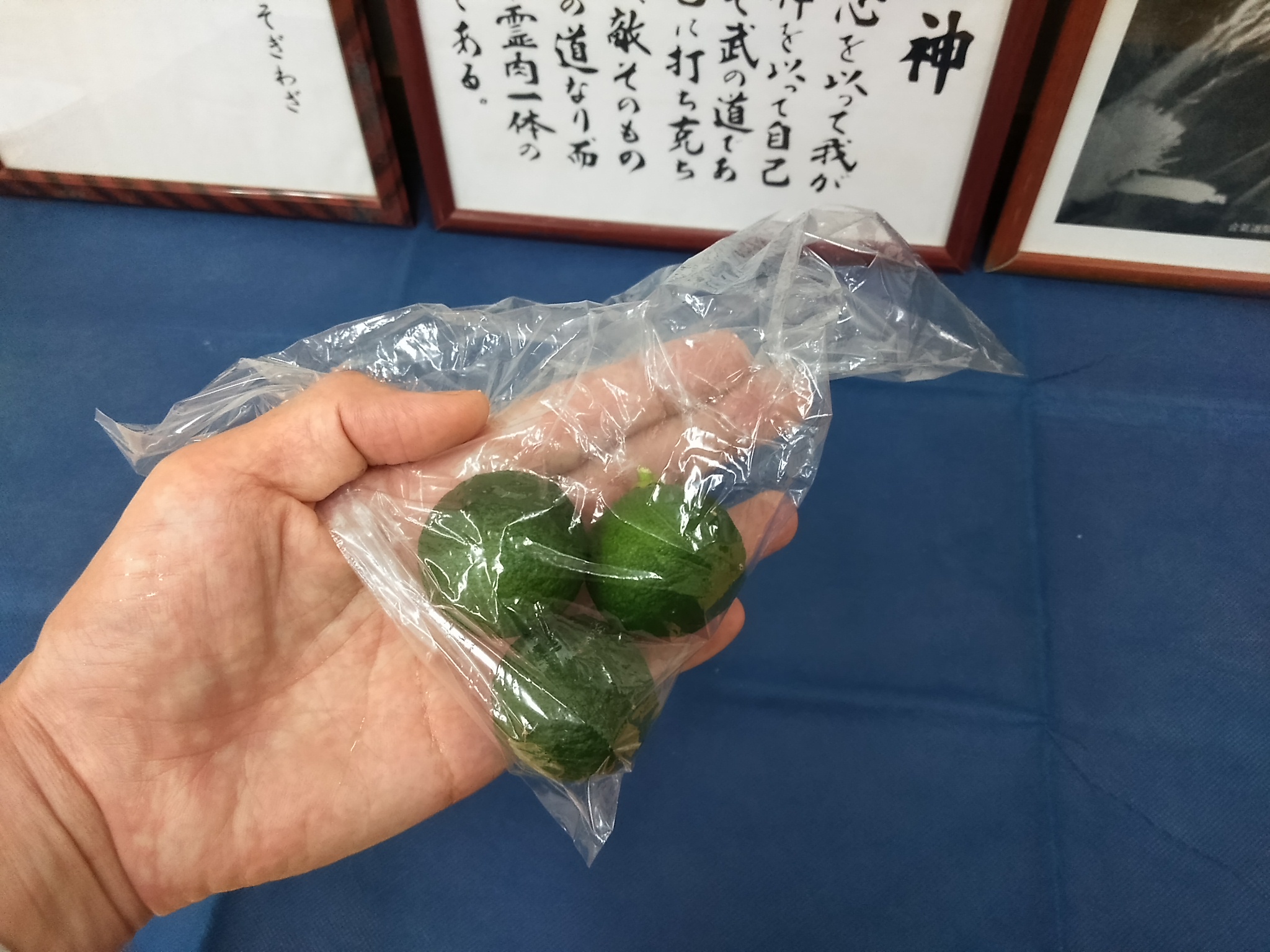 後日、昇級した方から去年に続き青ユズをいただきました。。