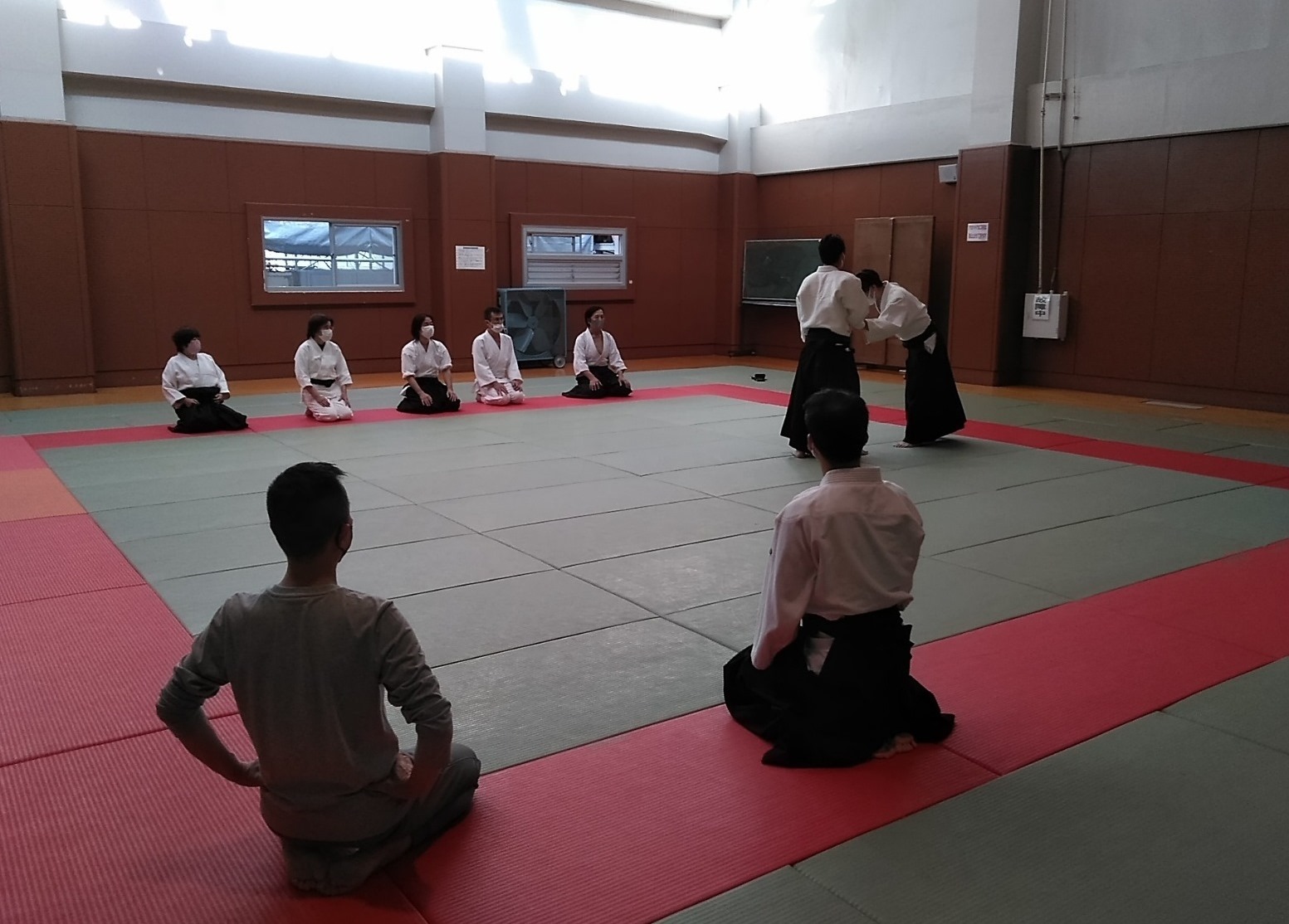 稽古はおよそ二時間で、礼拝、体操、一対一・多数者の体さばき、基本の呼吸力養成法、両手取り、片襟取りなどの呼吸技、後ろ片襟取り三ヶ条などの応用技などを行いました。稽古法、技の形は真生会のスタイルと概ね近いものですが、その行い方は違うところも少なくないのでずっと手探り状態で中々しっくりこない場面も多々ありました。でも視野を広げ研究を深めるためには、外に出て色々な経験をすることも大切ですよね。