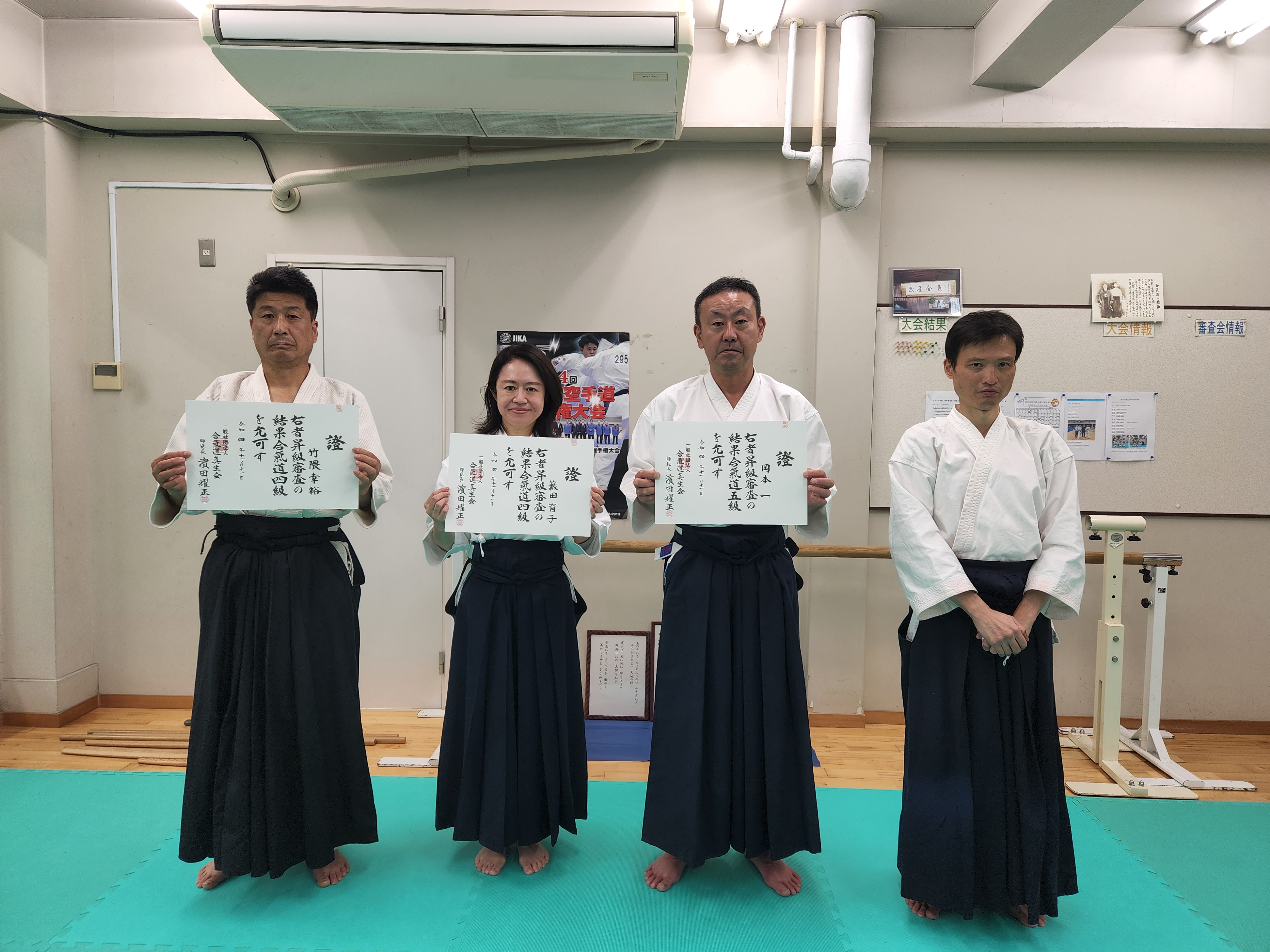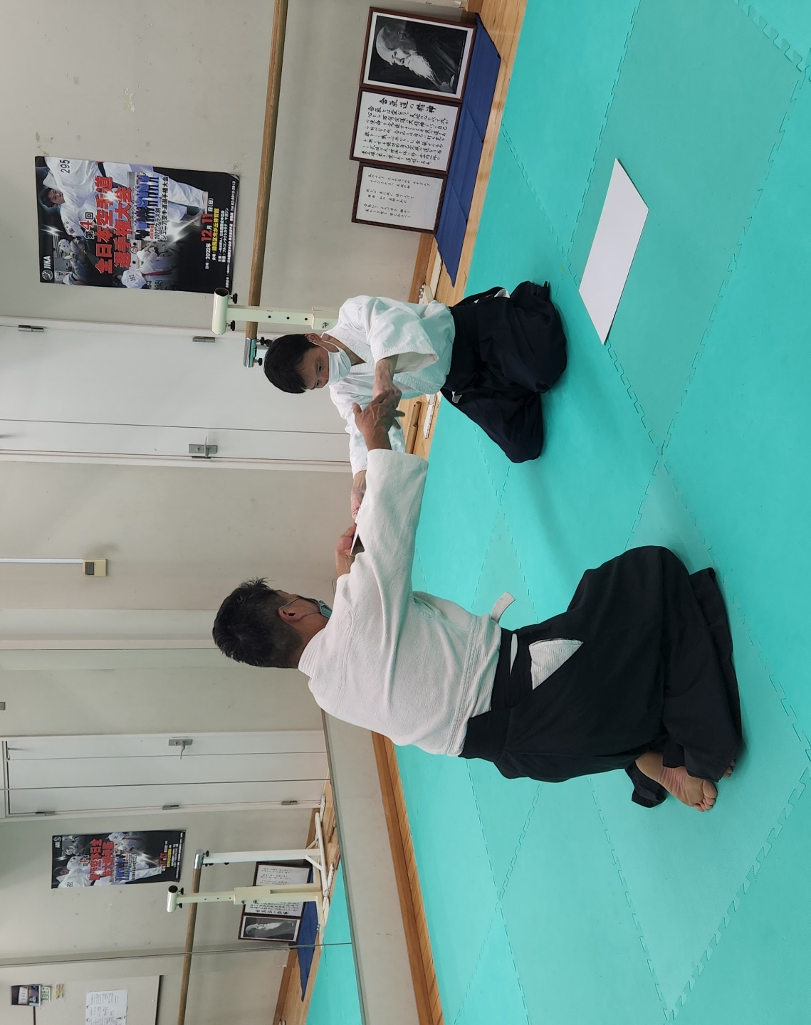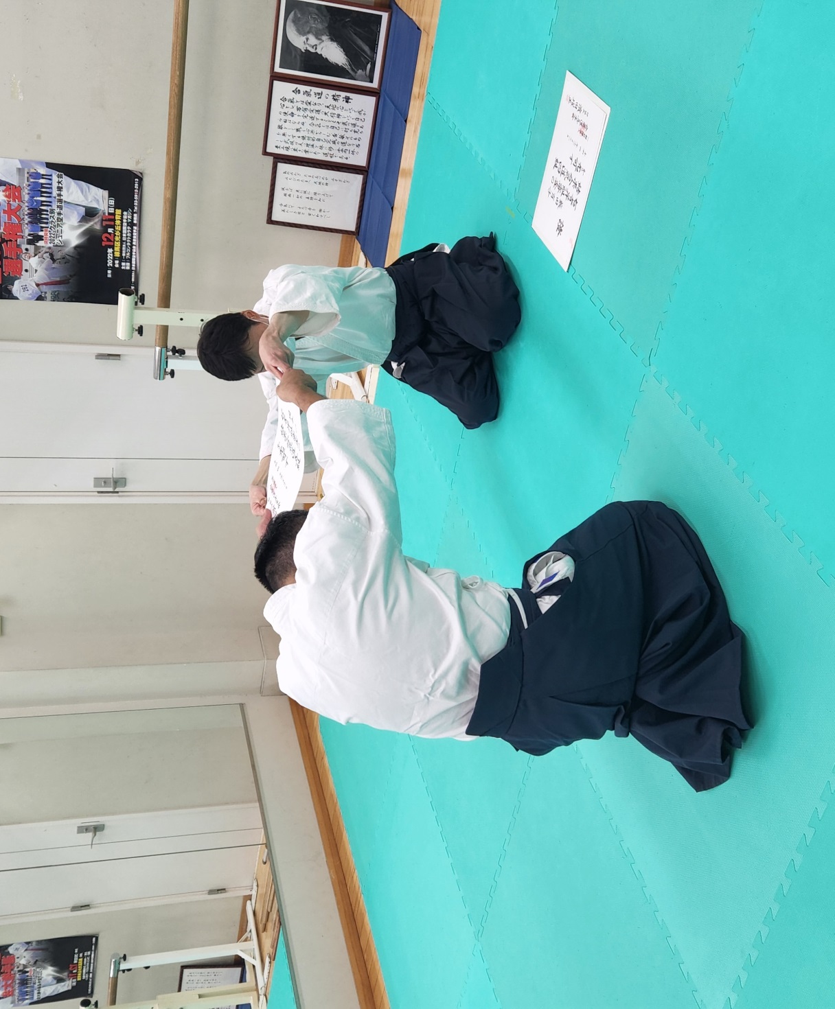 今回は二人が四級、一人が五級に昇級しました。三人同時昇級というのは少人数制の(いや、結果的にそうなっているだけなのですが…)川崎高津道場ではめったにないことです。というか初めてかも?なんにしてもおめでたいことです。昇級式では濱田師範長に代わって(半端者の自分がいつも甚だ畏れ多いことですが…)一人一人に昇級証書お渡しさせていただきました。