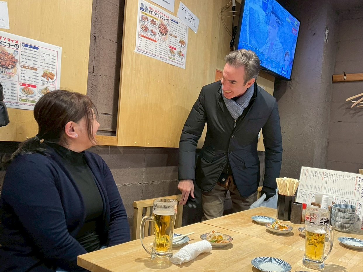 なおデニスさんとあゆみ指導員は、万生館合氣道、そして合氣道真生会の活動を通してお互いのことは知っており、ネット上での交流はあったそうですが、実際に会うのはこれが初めてとうこでした。実はデニスさんの来訪はあゆみ指導員には隠していて、懇親会の途中でデニスさんが現れた時のあゆみ指導員の驚きようと喜びようは、並々のものではありませんでした。。
