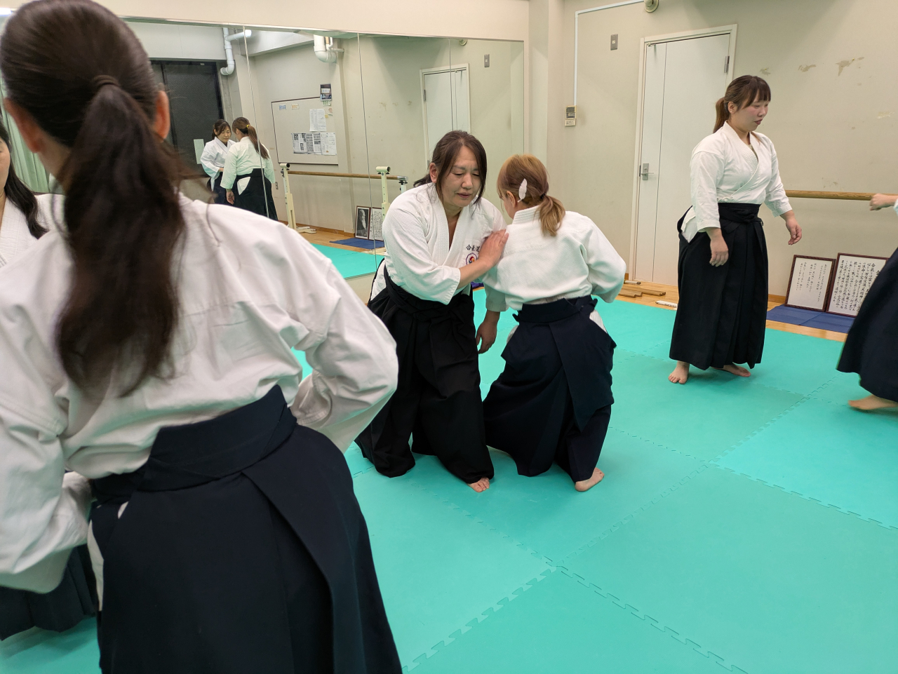 あゆみ指導員は合氣道歴20年以上のベテランであり、合氣道修行道場のガブリエル=ディ=マルコ道場長(五段)の奥様でもあります。川崎髙津道場にはこの数年の間にもう10回近くいらしていただいていて、とてもありがたいことです。合氣道修行道場は、元は合気会所属の道場でしたが、より求める合氣道を探求したいということで、2024年の秋に以前から交流のあった合氣道真生会に、門人一同そろって移籍した異色の道場でもあります。